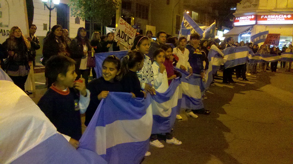 A pesar del frío, los docentes continuaron con la lucha y sumaron a los niños que dijeron “presente” en la plaza, palabra que no mencionaron por un largo tiempo en las aulas.