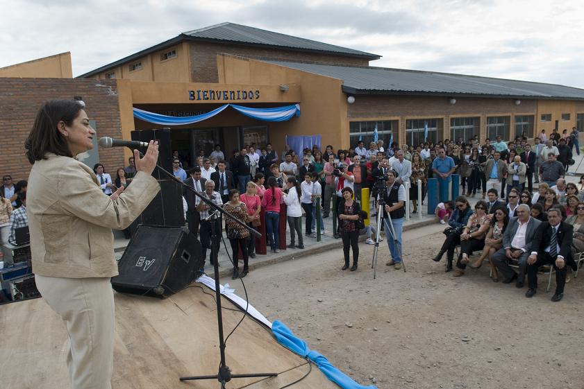Durante su discurso, la Primera Mandataria destacó el importante significado que tiene el flamante edificio escolar para la comunidad educativa de Recreo, al tiempo que manifestó “esta escuela como las más de 1500 escuelas que se hicieron en el país no se hubieran hecho si no hubiera habido un presidente y una presidenta con la decisión, la voluntad y el compromiso político de entender que el país es toda la Argentina y que Recreo vale tanto como Capital Federal y se merece una escuela de las mismas condiciones”.