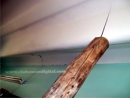 Con un importante aporte de la delegación municipal, se pudo apuntalar con varas para evitar que el techo se caiga hasta que puedan sacar todas las pertenencias que tienen en esa salita donde asisten numerosos niños de entre 4 y 5 años.