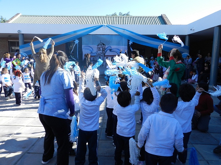 Durante el acto, papás y chicos de la salita de 3, 4 y 5 años realizaron la representación del cuento “La buscadera de la Patria”, a continuación, alumnos de 5º grado plasmaron sobre el escenario el cuadro “Pregones de la época” y por último los estudiantes de 1º, 2º, 3º y 4º grado hicieron mostraron la puesta “Hay un Gobierno Patrio”.