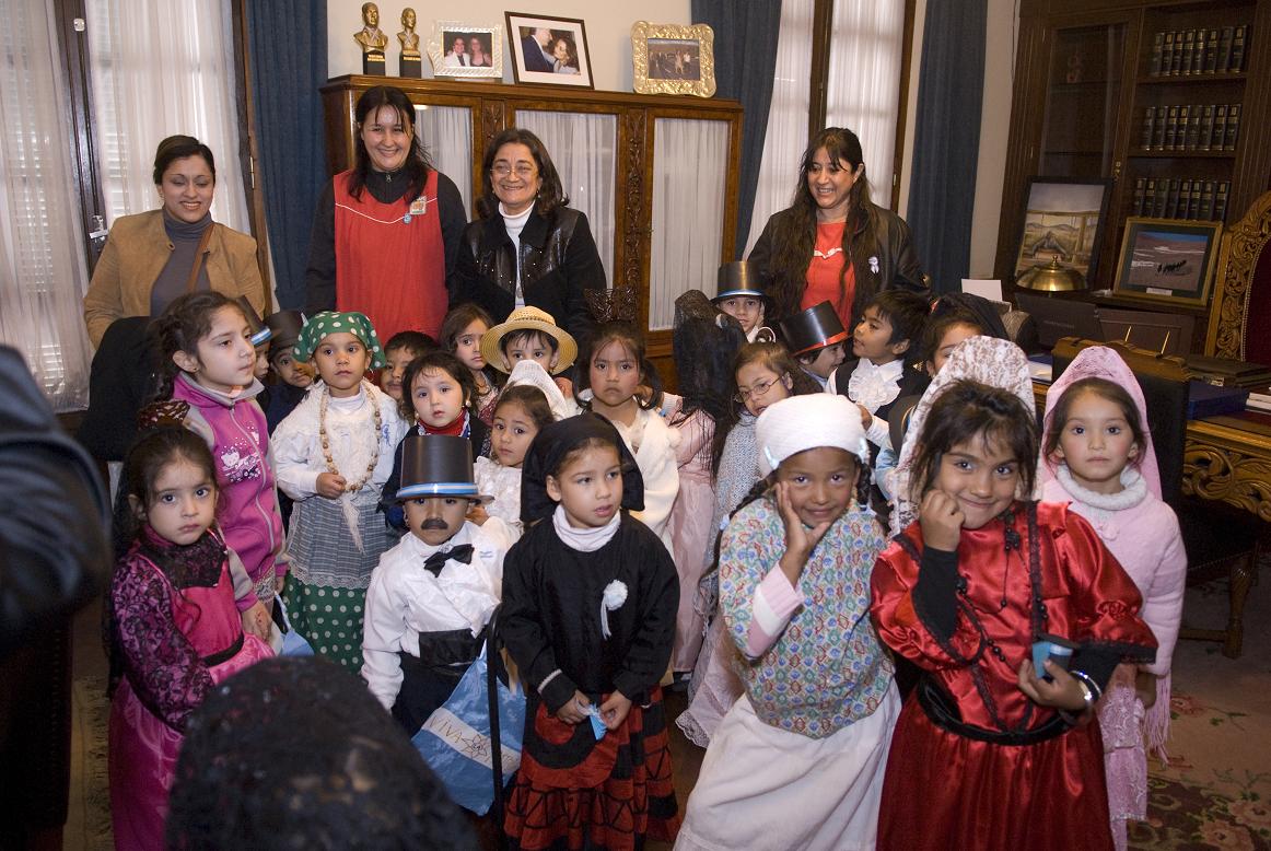 En la oportunidad, los niños entregaron a la primera mandataria souvenirs y escarapelas.