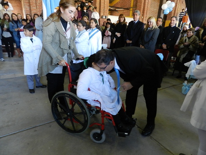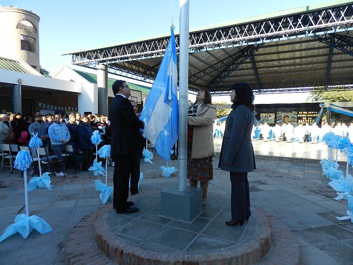 Durante el acto, Alberto Aron interpretó el Himno Nacional Argentino, junto a los alumnos de la escuela, quienes además lo cantaron en lenguaje de señas. A continuación la docente, Karina Palacios, expresó unas palabras de reconocimiento a la figura de Manuel Belgrano, quien izó por primera vez la bandera nacional un 27 de febrero de 1812 a orillas del Río Paraná.