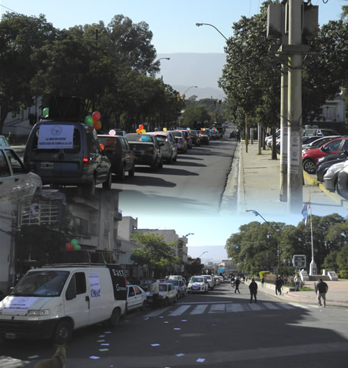 Los bocinazos se sintieron en todo el microcentro de la ciudad por donde transitaron los distintos vehículos a través de los cuales los docentes y directivos de la ENET N° 1 reclamaron el traspaso definitivo del la institución a la Universidad Nacional de Catamarca.