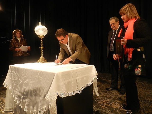 La firma tuvo lugar en el Cine Teatro Catamarca con un gran marco de alumnos y profesores en el acto por la Autonomía de Catamarca.