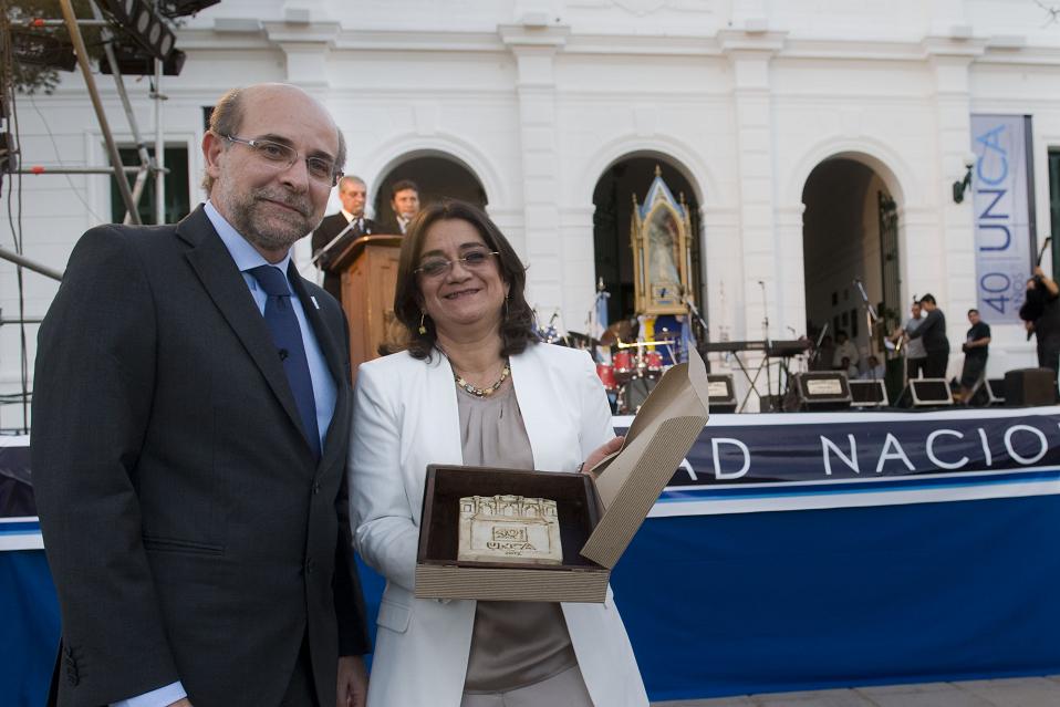Acompañada por el Vicegobernador Dalmacio Mera, el intendente capitalino Raúl Jalil y miembros de su gabinete, la Jefa de Estado asistió al acto central de la familia universitaria, durante el cual el Rector Flavio Fama le entregó una distinción como recuerdo de la significativa ceremonia, durante la cual se repasaron las circunstancias históricas del nacimiento de la UNCa y su constante progreso, expresado en los 6.000 alumnos que egresaron como profesionales en las últimas cuatro décadas.