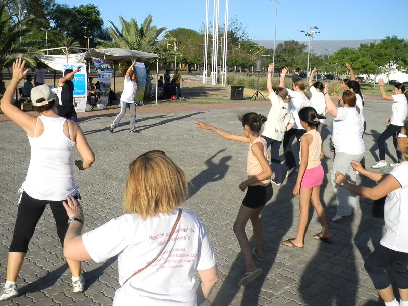 Esta tarde en el Parque de los Niños, se realizó una caminata de concientización del Cáncer de Mama y Master Class de Aerobic, una suelta de globos, y números folclóricos cargo del Instituto Rubinstein. Durante la mañana, se entregó folletería acompañada de consejería para toda la comunidad.