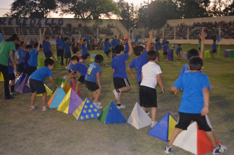 Esta vez, los alumnos le dieron un colorido especial con elementos geométricos, aros para las niñas, baldes coloridos, que utilizaron para la coreografía organizada por los profesores de educación física.