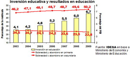Según un informe del Instituto para el Desarrollo Social Argentino (Idesa), el fracaso educativo, que testimonian las propias estadísticas oficiales, es el resultado de multiplicar los recursos sin sentido estratégico. Para revertir la situación no alcanza con proclamar metas. Es fundamental respetar la responsabilidad de las provincias en la gestión de la educación, redefinir el régimen de coparticipación y crear un sistema de evaluaciones educativas riguroso a cargo de la Nación que induzca a las provincias a mejorar la gestión.
