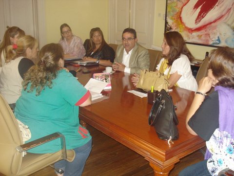 Del encuentro participaron la secretaria de Educación de la comuna, Martha Sueldo, la secretaria de Hacienda, Susana Peralta y referentes del sector docente encabezados por Mirta Barrionuevo, Estela Alegro y otras representantes.