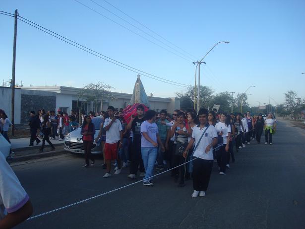 Se concentraron desde muy temprano en la Plaza del Maestro, desde donde partieron hasta el lugar donde fue encontrada la Imagen de la Morena Virgen del Valle, para agradecerle su visita a la institución educativa, en diciembre del año pasado, en el marco de las fiestas patronales.