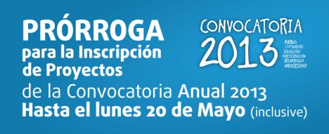 La Secretaría de Bienestar Universitario y Asuntos Estudiantiles de la Universidad Nacional de Catamarca, informa que se prorrogó hasta el 20 de mayo la inscripción a la Convocatoria Anual del Programa de Voluntariado Universitario 2013.