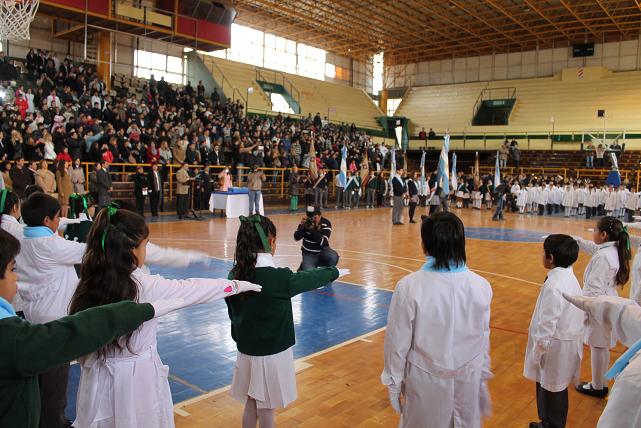 El intendente Jalil fue el encargado de tomar juramento a los 165 alumnos que concurren a los 4º grados de las escuelas N° 1 El Principito (turno mañana y tarde), N° 2 Juan Oscar Ponferrada (turno mañana y tarde), escuela N° 3 Gustavo Gabriel Levene (turno mañana y tarde) y la escuela N° 4 María Elena Walsh.