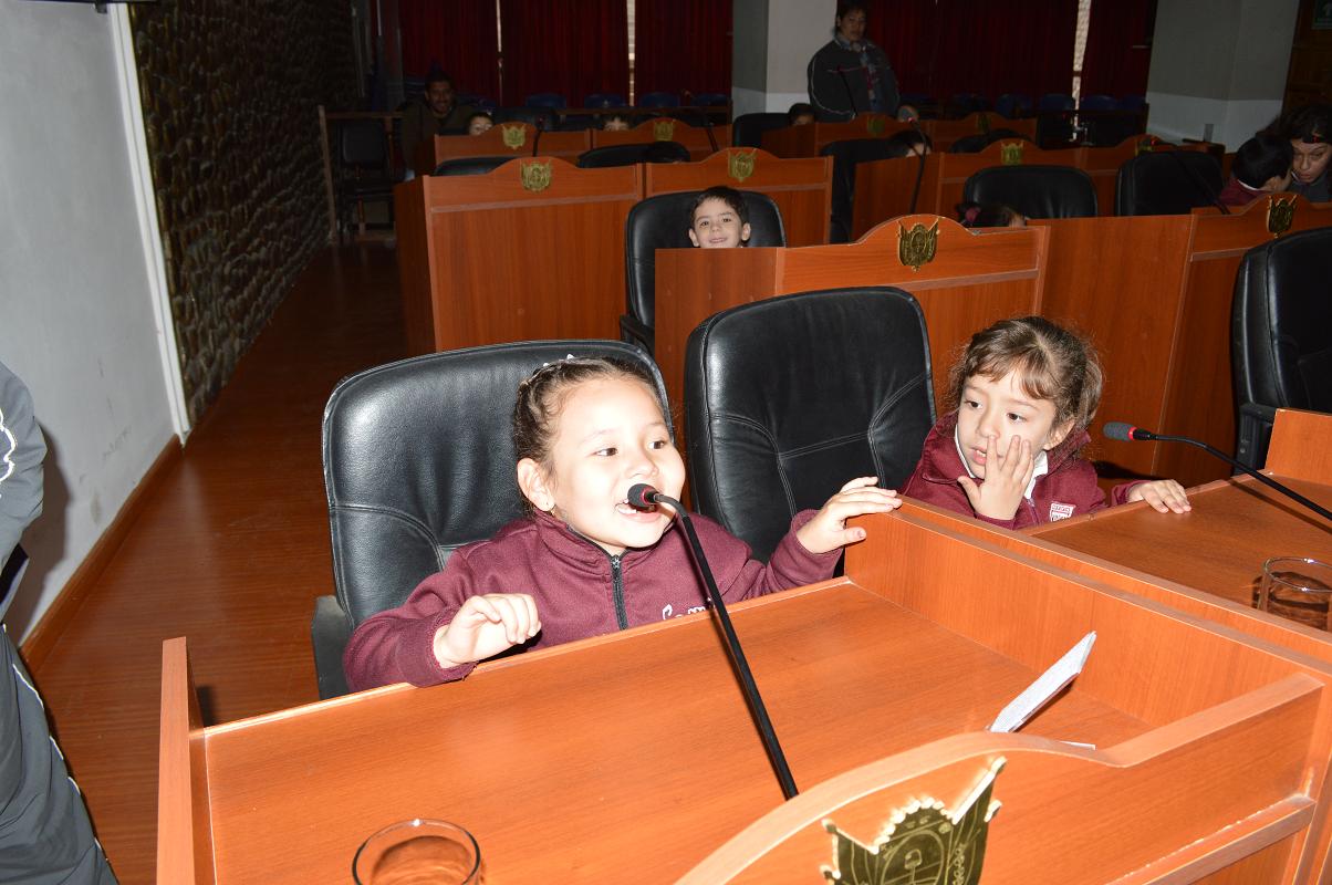 Durante el encuentro los niños acompañados de sus maestros, simularon una sesión, oportunidad que les permitió expresarse sobre las necesidades del establecimiento.