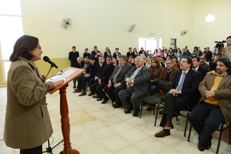 La Gobernadora Lucía Corpacci, junto al ministro de Educación de la Nación, Alberto Sileoni dejó inaugurada este mediodía, el nuevo edificio para la Escuela Secundaria N° 58 de San Antonio de la Paz. El edificio fue construido con fondos del Gobierno Nacional a través del Programa “Más Escuelas”, que coordina el Ministerio de Planificación de la Nación.