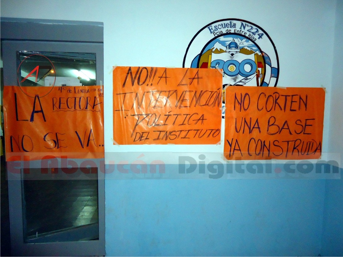Acompañados de carteles de distintas expresiones, los estudiantes salieron a la calle a expresar el apoyo a quien ocupa hoy en día el cargo de rectora, la profesora Griselda Sosa y repudiar el manejo dictatorial que tiene el gobierno de la provincia al nombrar directivos en establecimiento escolares “a dedo”.