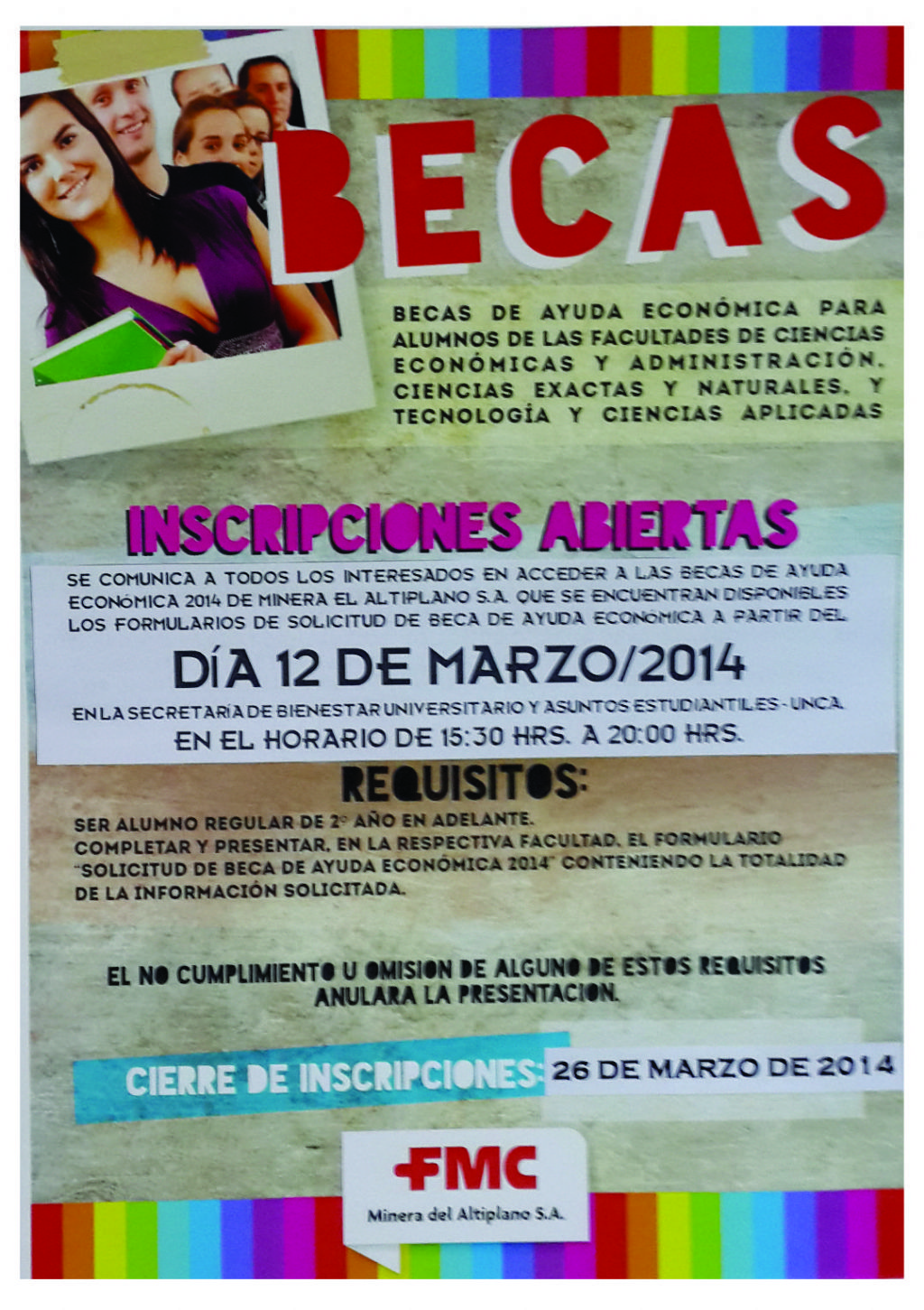 Universitario y Asuntos Estudiantiles, en el Horario de 15.00 a 20.00, sito en