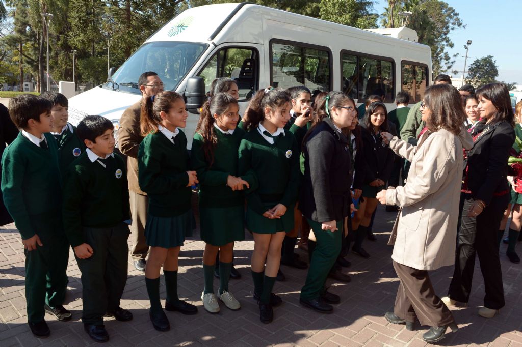 Luego de visitar Casa de Gobierno, los alumnos, junto a sus docentes, participaron en la explanada de la sede gubernamental, del acto de entrega de un vehículo 0 kilómetro, que será utilizado por la institución educativa.