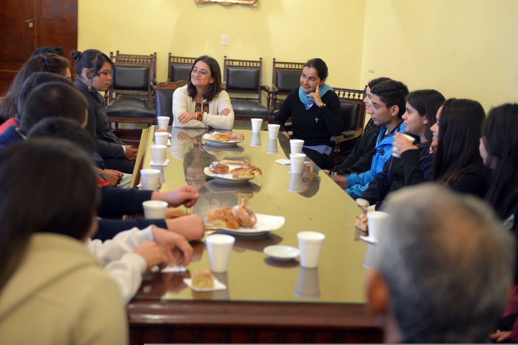 La Gobernadora Lucía Corpacci compartió esta mañana un desayuno de trabajo con los jóvenes que participan del programa "Concejales por un día” en la ciudad Capital. Acompañados por la presidenta del Concejo Deliberante, Jimena Herrera, los chicos dialogaron con la jefa de Estado y comentaron sus inquietudes con respecto a la legislación comunal.