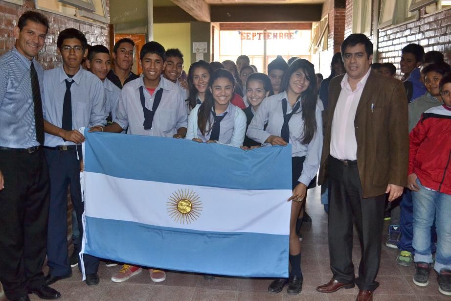 Rivera fue recibido por el personal directivo y alumnos de la mencionada institución educativa quienes agradecieron el gesto ya que con su aporte contribuye a la valoración de nuestra insignia patria.
