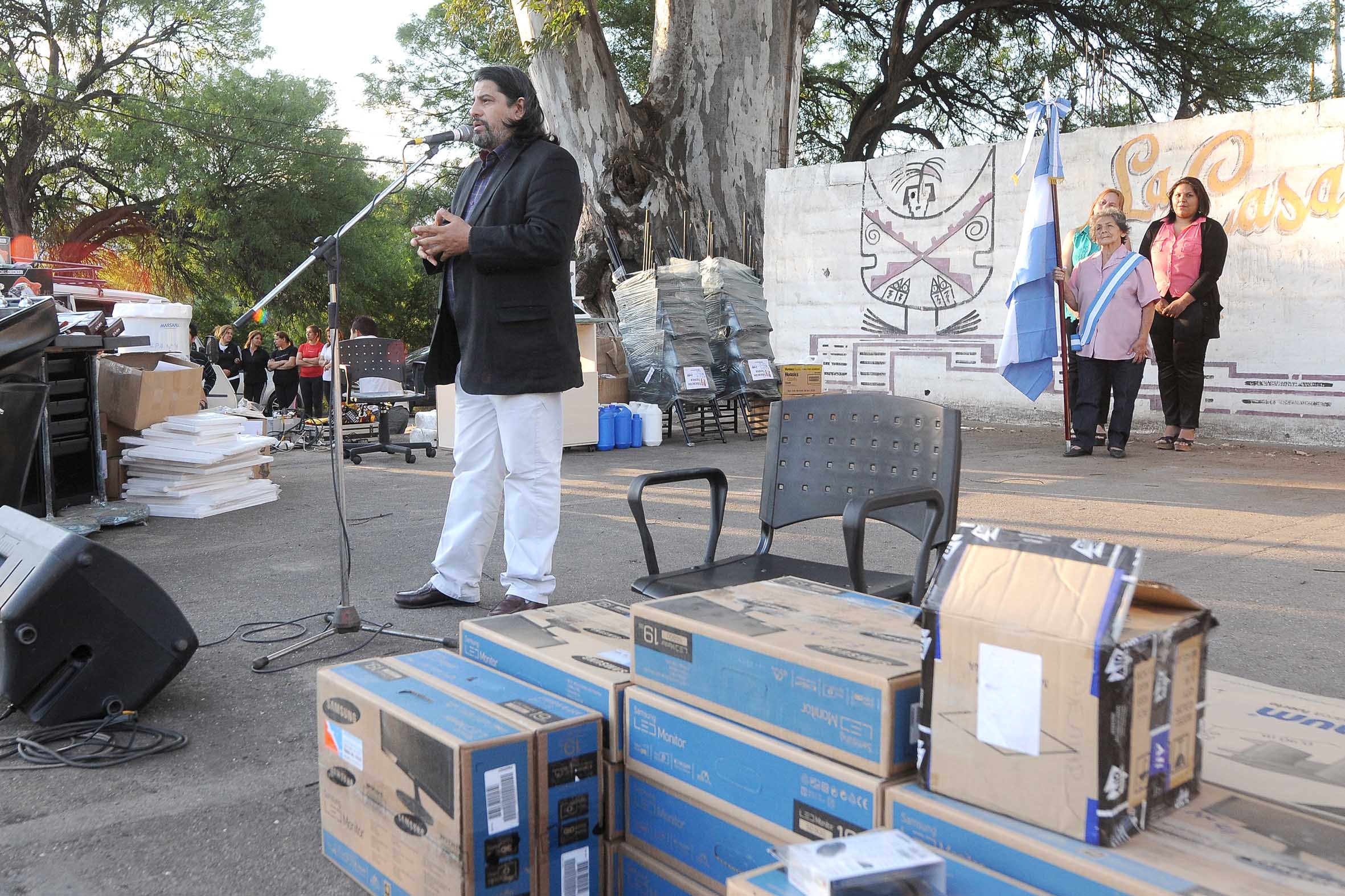 entrega a los directivos de: pinceles, bastidores, maquinas engrapadoras,