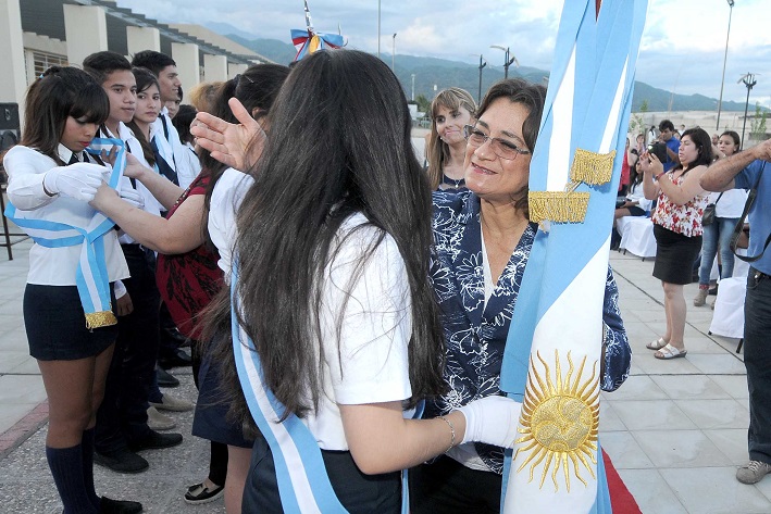 El acto se realizó en el patio del flamante edificio, que fue inaugurado hace pocos meses por la propia Gobernadora, y en su transcurso se realizó la entrega de certificados a los alumnos con mejores promedios de la institución. También, con la presencia de la jefa de Estado, recibieron sus diplomas los 78 egresados de la Escuela que celebraron junto a familiares y amigos en el marco de una verdadera fiesta.