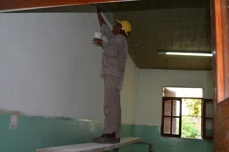 Otros de los frentes de trabajo se desarrolla en la Escuela Municipal N°2, Romís Amado Raiden, en la construcción de un complejo de ochos aulas para el sistema educativo secundario del establecimiento del Barrio La Antena.