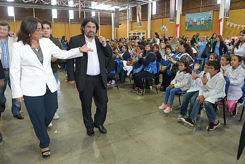 Quiero decirles a todos los docentes lo que siempre digo, que admiro mucho la tarea de los docentes; admiro mucho la tarea de los docentes comprometidos, que demuestran con el accionar diario que además de ser trabajadores, tenemos una vocación para tal o cual cosa, el que es médico para ser médico, policía para ser policía, el que es docente para ser docente, por algo nos inclinamos para eso, y se refleja, se refleja mucho en la actitud de los chicos cuando uno entra a la escuela, se refleja mucho en el estado de las escuelas año tras año. Y me voy a detener un poco acá porque les quiero pedir, que pensemos entre todos, ¿Qué podemos hacer para cuidar un poco más las escuelas? Porque he visto escuelas, que yo las visite el año pasado, con sus baños nuevos, totalmente renovadas, puedo decirles que tenemos las fotos, y hoy las hemos visto… no se me ocurre otro término más que "vandalizadas”, y tenemos que trabajar como sociedad, los docentes, el Gobierno, los padres, los alumnos, entendiendo que es un bien público, y que decir "bien público” quiere decir que es "bien de todos”, no bien de ninguno, como a veces se visualiza lo público; que pensemos cuál es la estrategia para estimular al cuidado de nuestras escuelas. Nadie dice que no sufran el deterioro común de un establecimiento donde pasan por día más de mil jóvenes, pero una cosa es el deterioro común y otra cosa es la destrucción, veamos cómo podemos trabajar; yo decía hagamos un concurso, hagamos algo que nos estimule a cuidar la escuela; y en eso estoy segura que ustedes son los que están al lado de los alumnos y van a tener mejores ideas que nosotros.