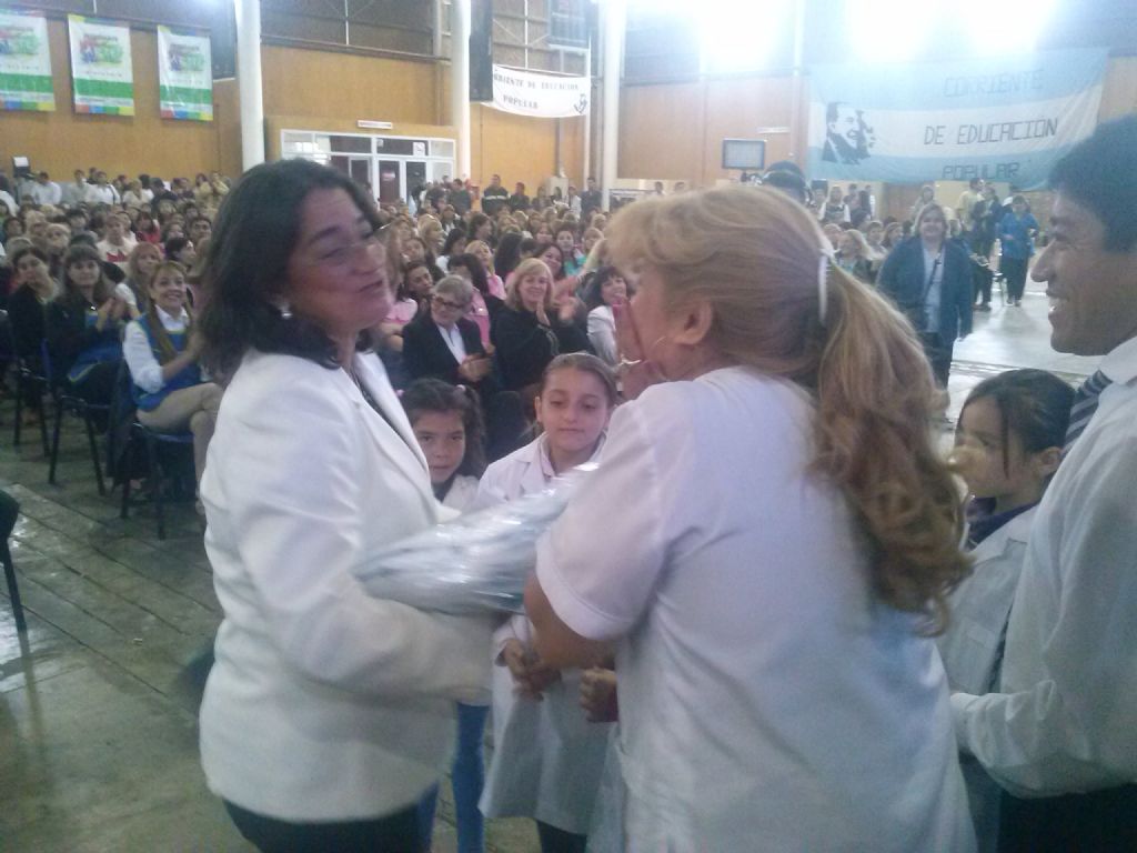 En la mañana de este jueves, la propia gobernadora fue quien encabezó la entrega de guardapolvos y kits escolares.