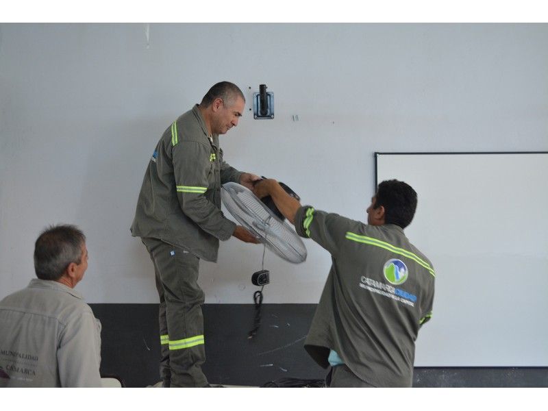 ventiladores de techo por los de pared en las escuelas N° 1, 2, 3 y en la