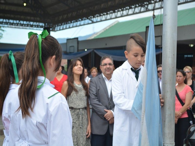 En la ocasión los alumnos de las cuatro escuelas municipales hicieron la entrada a la ceremonia con sus respectivos abanderados y escoltas de las enseñas Patria y de la Provincia. Luego, los alumnos designados para el izamiento de la Bandera Nacional fueron acompañados por el jefe comunal y funcionarios.