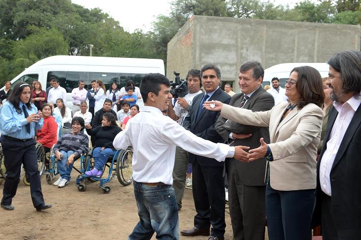 Con una inversión de más de 3 millones de pesos, cuatro instituciones educativas de la Provincia recibieron los vehículos utilitarios para el traslado seguros de niños, jóvenes y adultos con capacidades especiales. Recibieron las combis la Escuela Especial N°1 "Virgen del Valle” de la localidad de Chumbicha; la Escuela N°998 "Santa Lucía” para ciegos y disminuidos visuales; la Asociación Padres y Familiares del Discapacitado Motriz (APyFaDiM) y la Asociación Padres y Amigos del Niño Especial (APANE). También se anunció que se entregará próximamente a la Escuela Especial N° 997 "Niño Jesús de Praga" de Santa María recibirá el vehículo especial.
