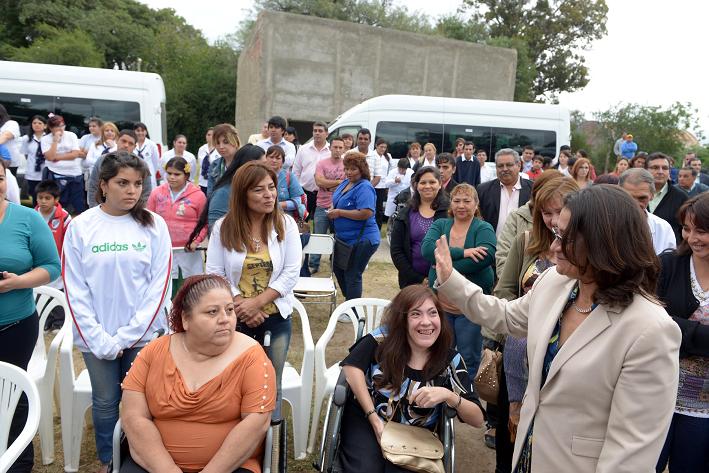 "Estamos entregando aquí estas trafic, que no sería posible sin la decisión de nuestra Presidenta que destinó que los fondos vayan a la CONADIS (Comisión Nacional Asesora para la Integración de las Personas con Discapacidad), para el área de discapacidad, porque también tiene muy claro que así como el país es uno solo, los argentinos valemos lo mismo, con capacidades especiales o no, y todos tenemos los mismos derechos. Hoy ha sido una hermosa mañana y me encantó compartirla con todos ustedes”.