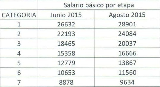 ciento al básico y regirá todo este 2015. Si se tiene en cuenta la escala