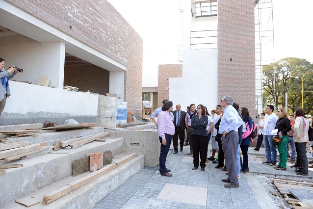 La jefa de Estado recorrió el flamante edificio, que alcanza un 70 por ciento de ejecución, acompañada por el ministro de Educación, José Ariza; el ministro de Obras Públicas, Rubén Dusso; el secretario de Obras Públicas, Aldo Creche y el intendente Raúl Jalil, entre otras autoridades.