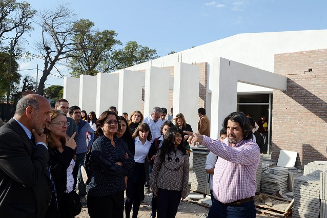 Coincidieron también en la visita un grupo de jóvenes que serán futuros alumnos del establecimiento, un enorme edificio que contará además con su campo deportivo.