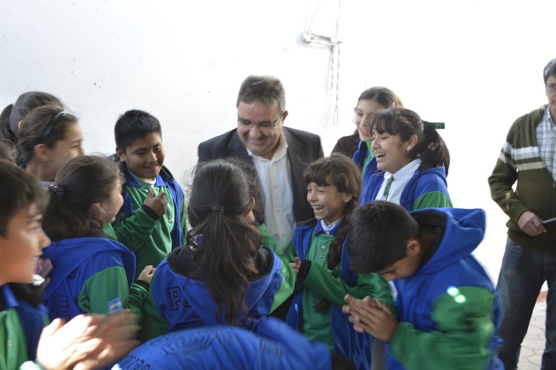 Sastre, directivos, profesores y alumnos de la escuela, quienes acompañaron a