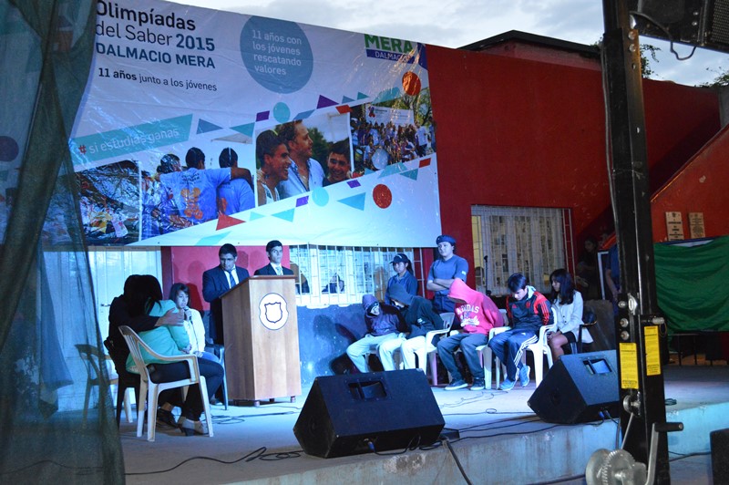 El coordinador de las olimpiadas en el departamento, Hugo Olmos, transmitió el mensaje enviado por el vicegobernador, Dalmacio Mera, quien por cuestiones de agenda no pudo estar presente, manifestando que "quiero expresarles la gratitud que el vicegobernador tiene por la participación que han demostrado ustedes durante todo el año, darles las gracias y desearles lo mejor para la escuela que triunfó que disfruten del viaje que van a realizar a fines del mes de noviembre”.