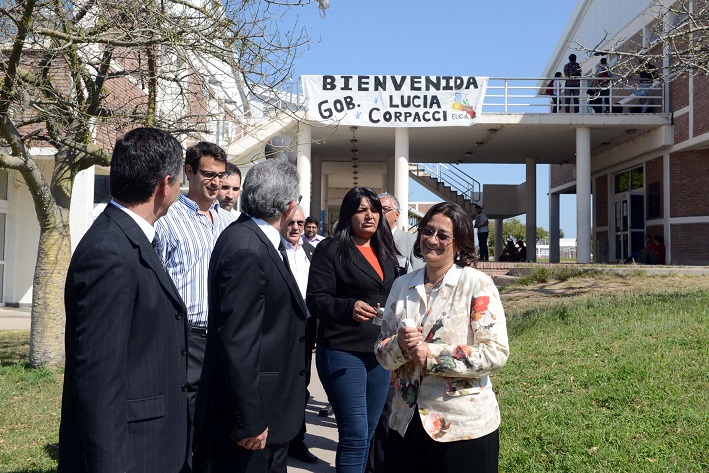 La Gobernadora Lucía Corpacci desarrolló esta mañana una intensa actividad que la llevó por Miraflores y Huillapima, en el departamento Capayán, para luego visitar la provincia de La Rioja, donde firmó un importante convenio con la Universidad.