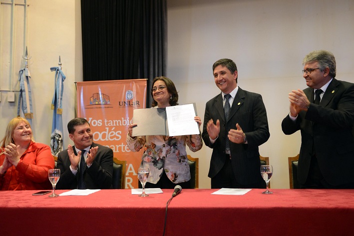 La Gobernadora Lucía Corpacci participó en la tarde de hoy, en el Anfiteatro "17 de octubre”, de la firma de convenio entre el Gobierno Provincial y la Universidad Nacional de La Rioja, en donde se beneficiarán los futuros profesionales catamarqueños. En la oportunidad Lucía fue nombrada "Visitante Ilustre” de la casa de altos estudios.