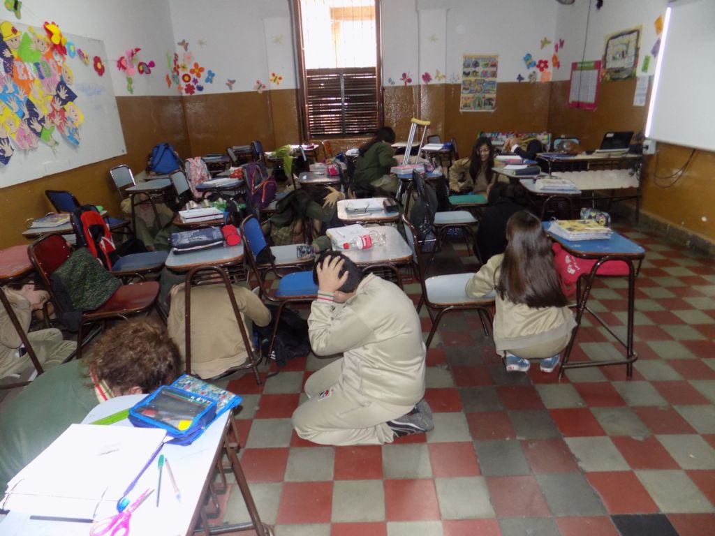 Durante el proceso, los alumnos abandonaron el edificio, ubicado en la esquina de Rivadavia y Esquiú, y se ubicaron en los lugares preestablecidos por el plan, utilizando las cinco salidas de emergencia.