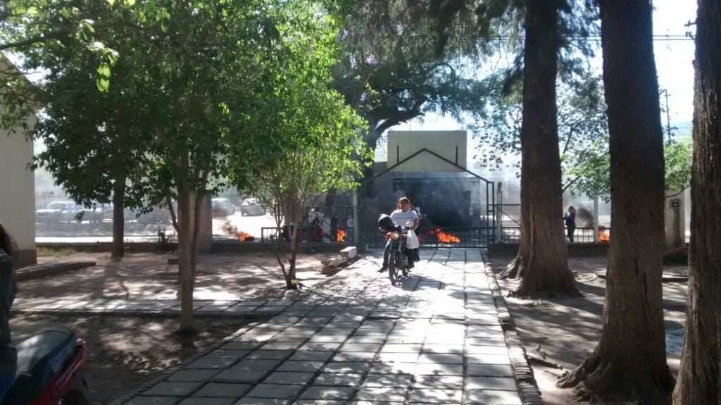 al establecimiento, que incluye quema de neumáticos, en apoyo a la directora del