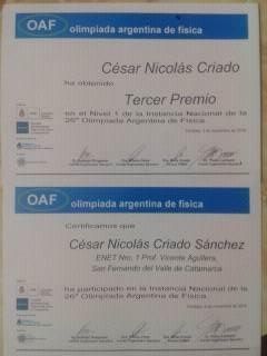 El joven catamarqueño, alumno de la Escuela ENET N°1, obtuvo