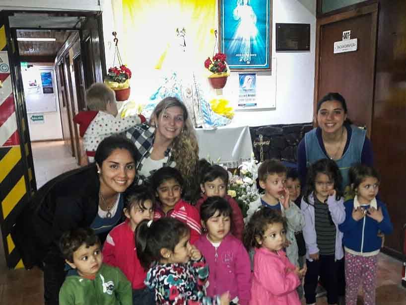 Jimena Barros, los chicos se acercaron a la imagen de la Madre Morenita para