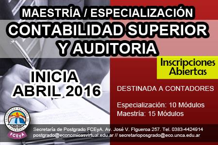La Facultad de Ciencias Económicas y de Administración informa que se encuentran abiertas las inscripciones para la Maestría en Contabilidad Superior y Auditoría, destinada a Contadores.