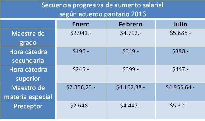 que tendrá el aumento salarial docente previsto para el año 2016.