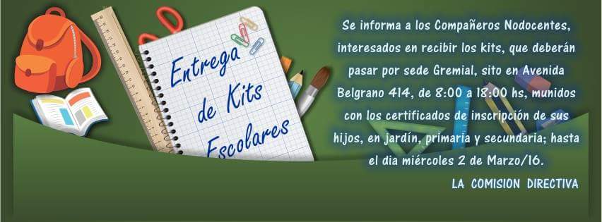 escolares se entregarán en la sede gremial, ubicado en Avenida Belgrano 414, en