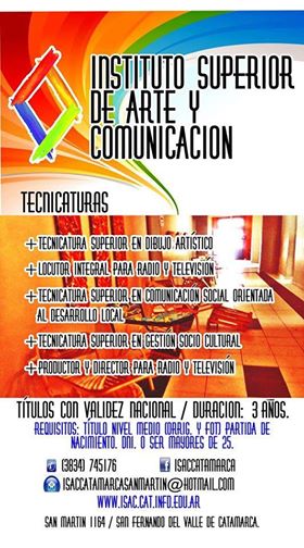 carrera: http://isac.cat.infd.edu.ar. Facebook: Isac Catamarca.