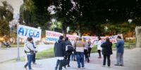 Luego conocer el dictado de la conciliación obligatoria por parte de la Dirección de Inspección Laboral, integrantes del gremio educativo ATECA improvisaron esta tarde una manifestación frente a Casa de Gobierno que contó con la participación de no más de 15 personas.
