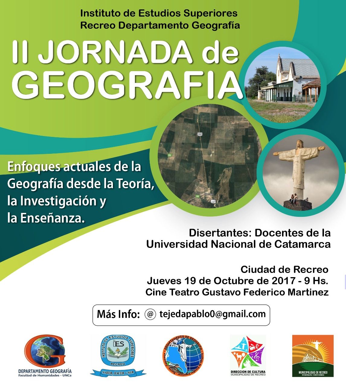 jueves, 12 de octubre de 2017 13:22 jueves, 12 de octubre de 2017 13:22 Organizadas por el Departamento de Geografía del IES Recreo, desde las 09 hs. Disertarán Docentes de la Universidad Nacional de Catamarca.