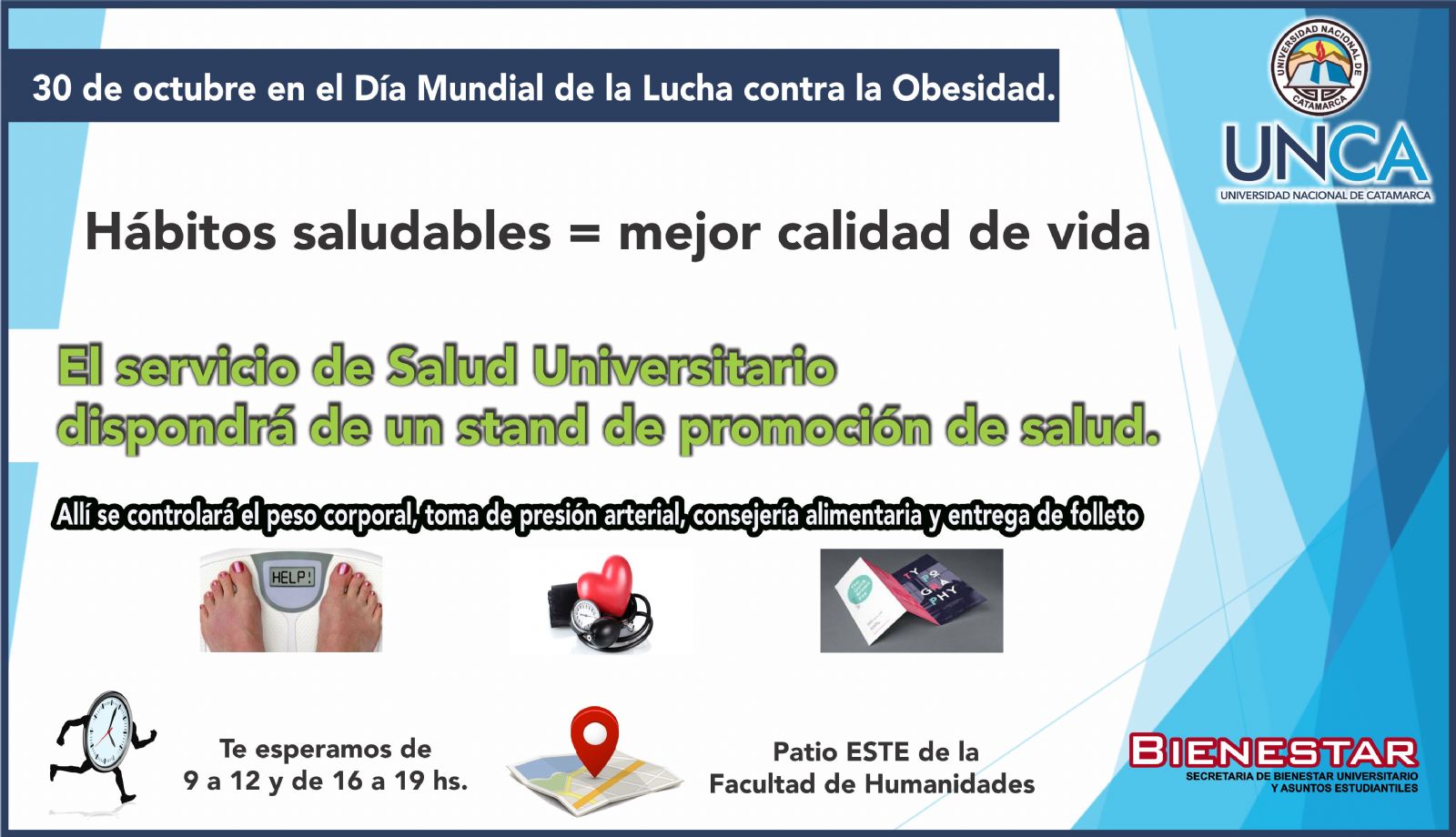 dispondrá de un stand de promoción de salud el 30 de octubre, en el Día Mundial